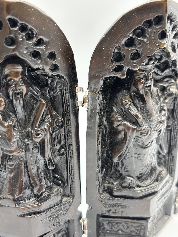 Drieluik boeddha beeldje. let op 1 scharnier zit los (zie foto).