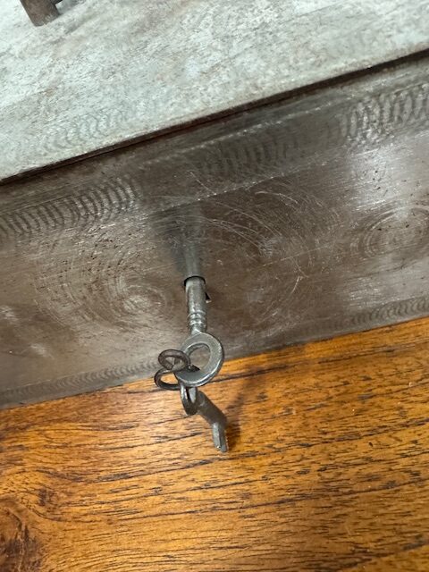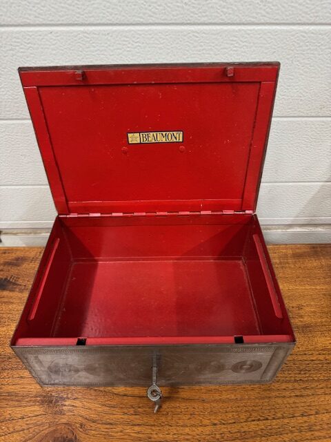 Oude metalen geldkist