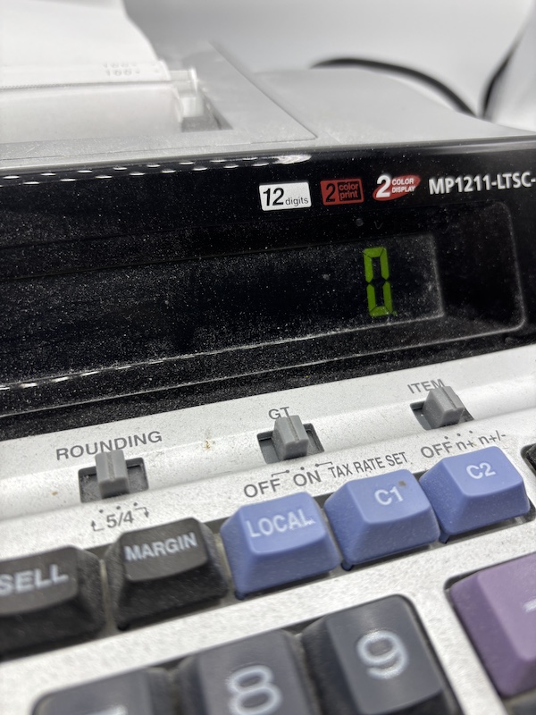 Rekenmachine met printer. lampjes branden, geen garantie.