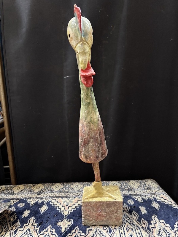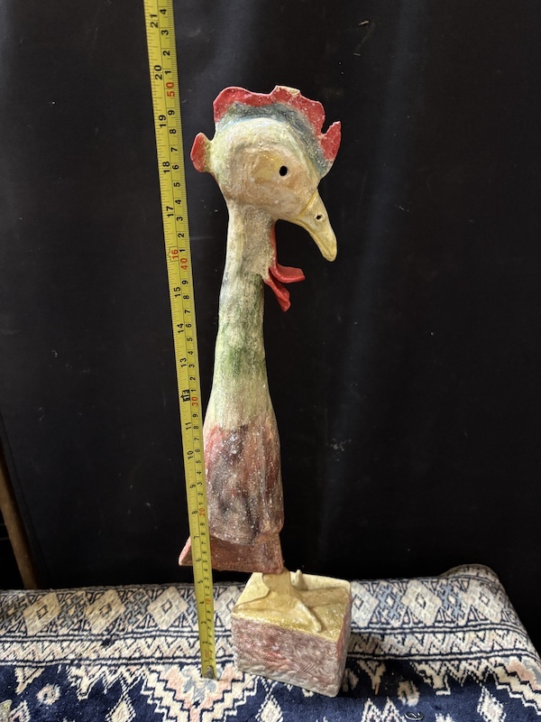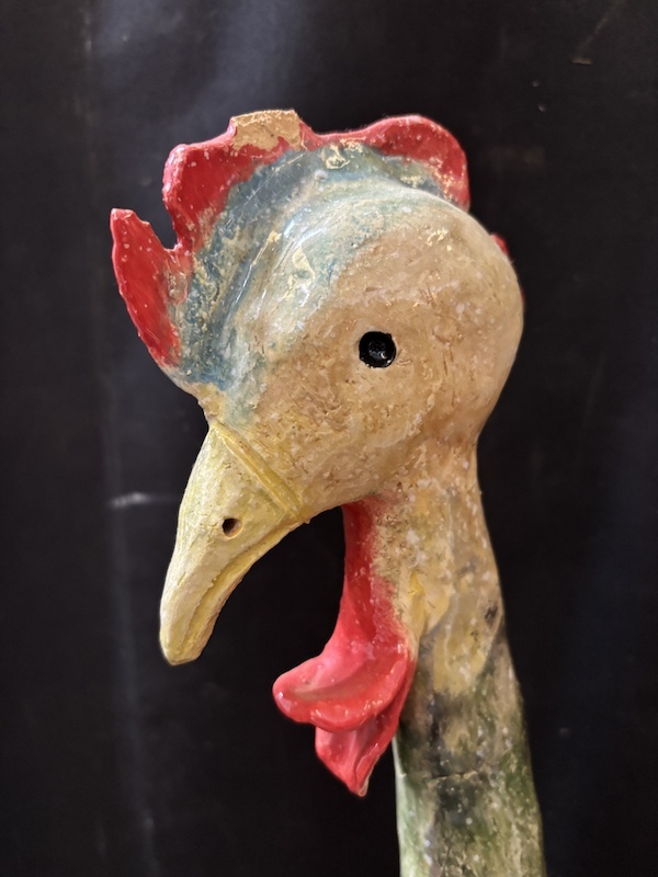 Sculptuur van haan, let op! beeld draait, zit niet helemaal vast.