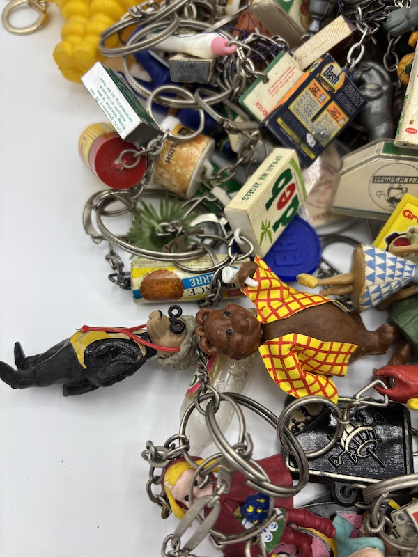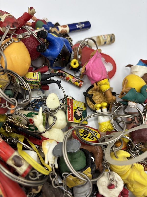 Verzameling diverse vintage sleutelhangers.