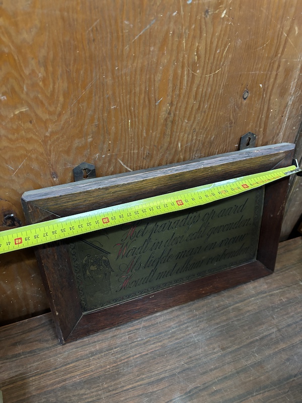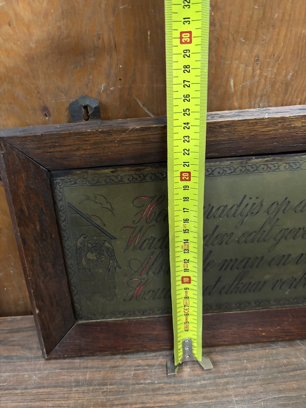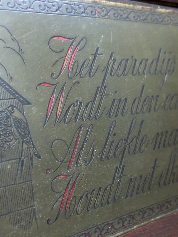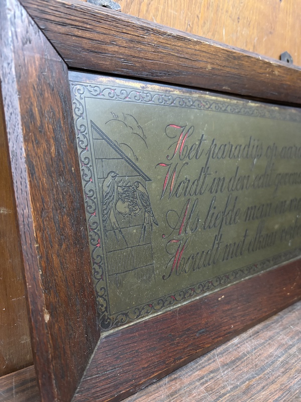Oud wandbord met spreuk.